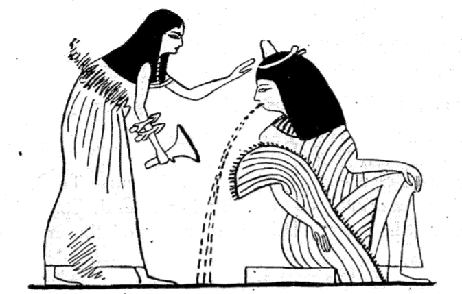 The Tekh Festival, or as it is also referred to ‘The Feast of Drunkenness’ marked the time that humanity was saved from destruction at the hands of the goddess Skehkmet with the use of beer and some quick thinking. The central part of this festival can be seen on the ‘Porch of Drunkenness’ in the Temple of Mut at Karnak. It seems that in the Hall of Drunkenness, worshippers got drunk, slept, and then were woken by drummers to commune with the goddess Mut. Participants would lessen their inhibitions and preconceptions through alcohol and experience the goddess intimately upon waking to the sacred drums[5]. I don’t know if that is the best way to wake up after you have had a lot to drink? (Figure 5)