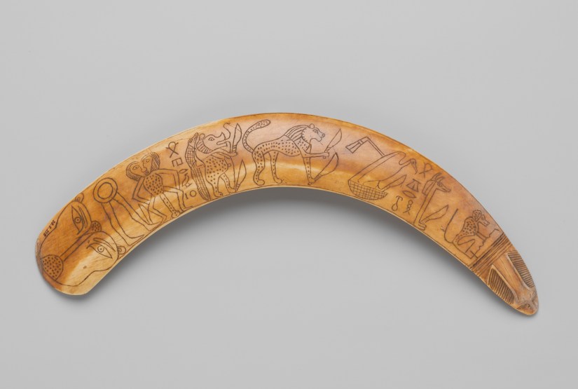 In general, however, Bes and the female counterpart Beset is associated with the protection of children, pregnant women and women giving birth and is often shown alongside Tawaret[4]. In this role he is seen as an Apotropaic deity and calling upon his protection falls under apotropaic magic. A prime example of this is the ‘Apotropaic wands’ found in Middle Kingdom burials. Although their exact use is unknown, these wands seem to have provided protection during birth and early in life showing Bes /Taweret/ other demons protectively wielding knives (Figure 3).